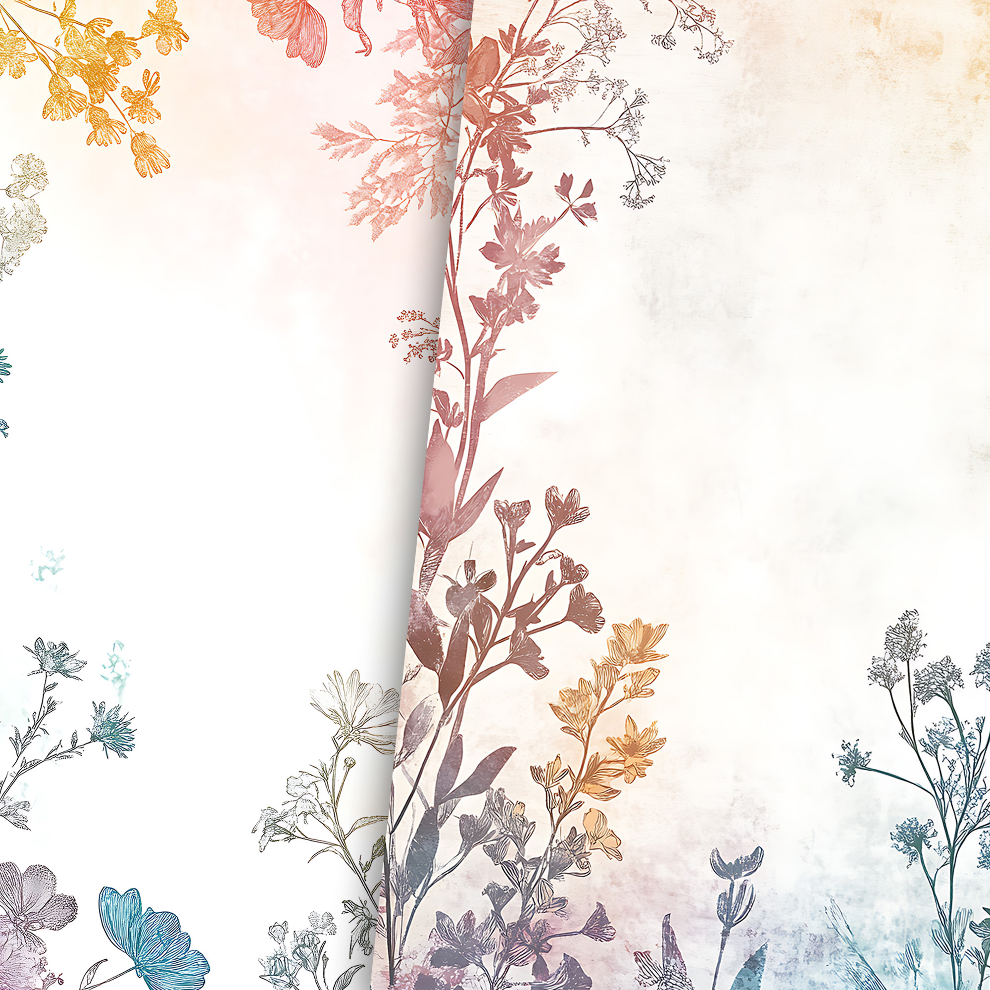 20 pc Wildflower Border in Pretty Colors of the Rainbow Printable Junk Journal Half Papers for Book Making, Crafting, Digital Design, Cards, Decoupage and Scrapbooking Papercraft Digital Kit