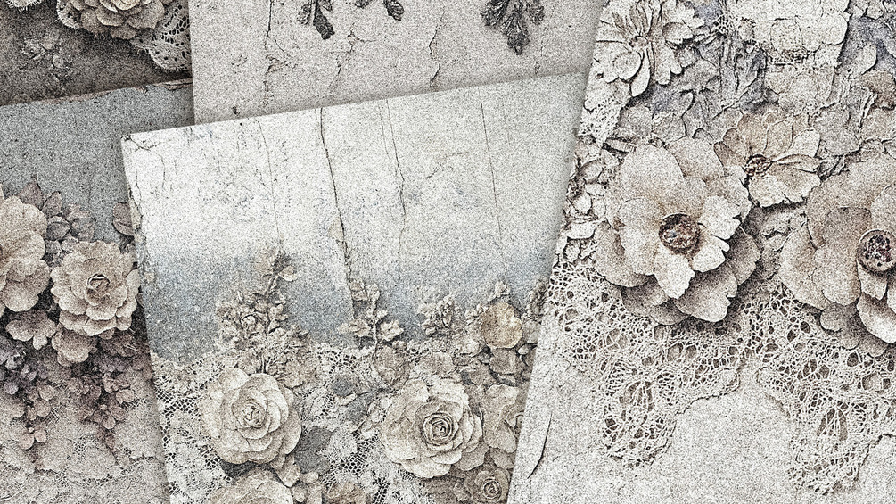 Textural lace and flowers grainy printable junk journal pages, backgrounds. Each image is different. Add embellishments, typography, card stock and personalization to make these truly unique. Half sheet size allows you to choose how you want to print. 5.5" w x 8.5" h is easily scaled via your printer settings. Designs fit two per page when properly placed into a page layout or desktop publishing program. Place and Print!