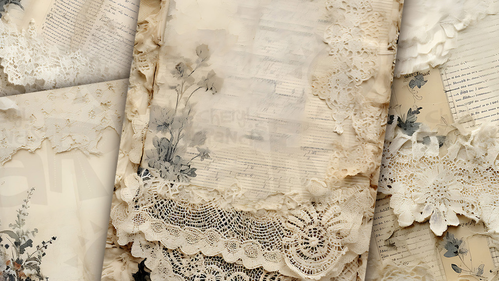 20 pc Layered Lace Paper Collage Printable Junk Journal Pages Half Paper Background for Book Making, Crafting, Digital Design, Cards, Decoupage and Scrapbooking, Papercraft Digital Kit