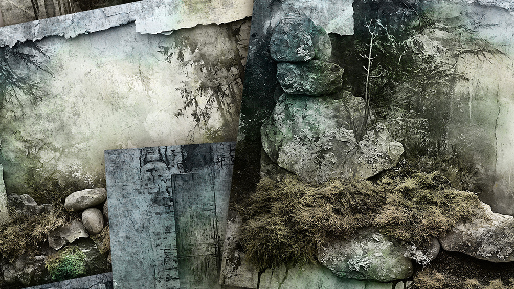 24 pc Mossy Stone Forest Collage Printable Junk Journal Horizontal Half Paper Nature Digital Kit Craft Decoupage Book Pages Scrapbook Background
