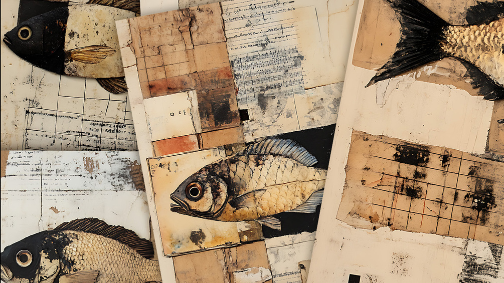 16 pc Rustic Fish Ephemera Collage Printable Junk Journal Half Papers for Book Making, Crafting, Digital Design, Cards, Decoupage and Scrapbooking, Papercraft Digital Kit